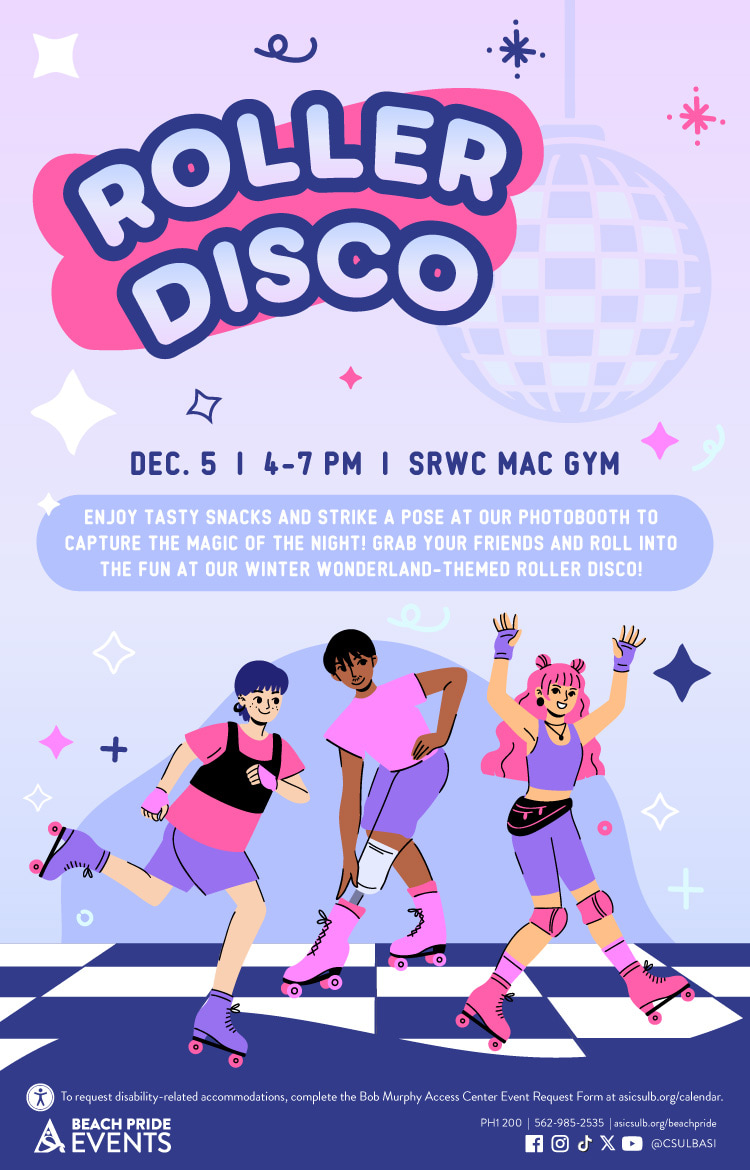 Get into the groove and roll away from the stress with your friends at this winter wonderland-themed roller disco event! Enjoy FREE rink time from 4 to 7 p.m. Apart from skating and dancing, you can enjoy snacks, activities and a photo booth. This event is FREE for all Long Beach State University (LBSU) students, so don't miss out on this fun experience!